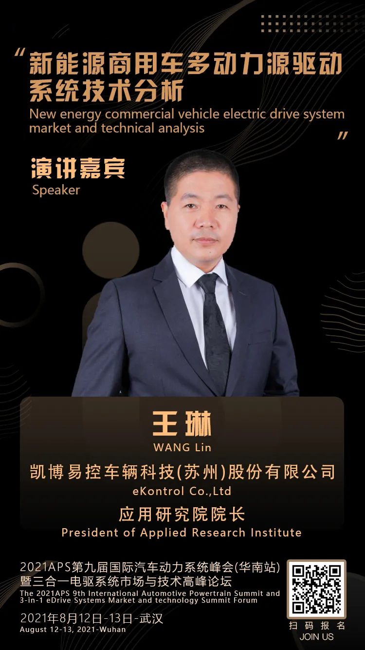 此次2021APS三合一電驅系統(tǒng)峰會,我們特別邀請凱博易控車輛科技(蘇州)股份有限公司 應用研究院院長 王琳 先生,他將圍繞新能源商用車多動力源驅動系統(tǒng)技術為大家?guī)碇黝}分享!